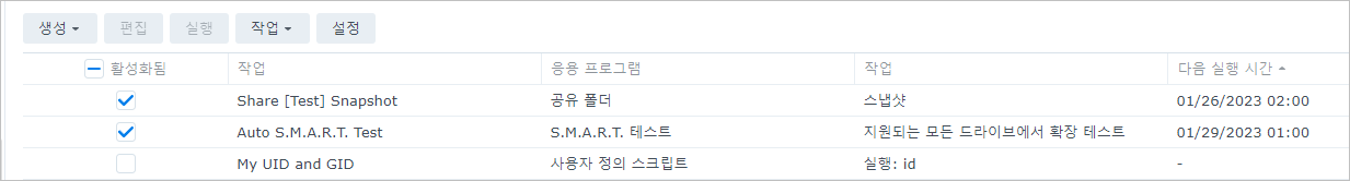 나중에 시놀로지 [작업 스케줄러]에서 다시 실행해도 됩니다!